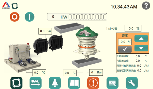 · 啟動液壓系統提升動錐,擴大排礦口;